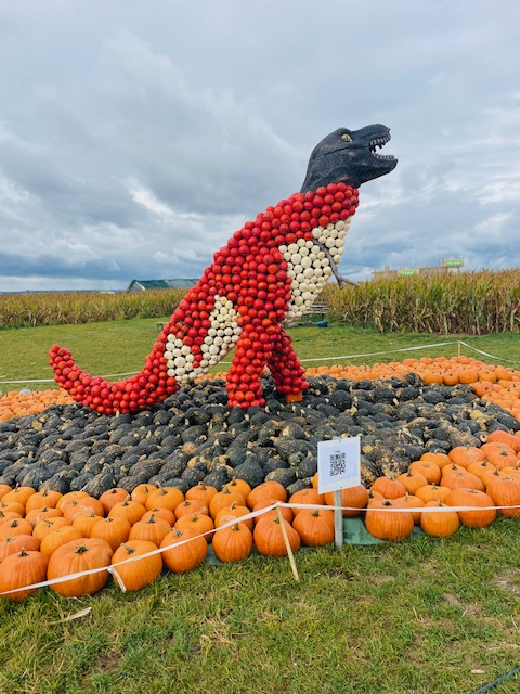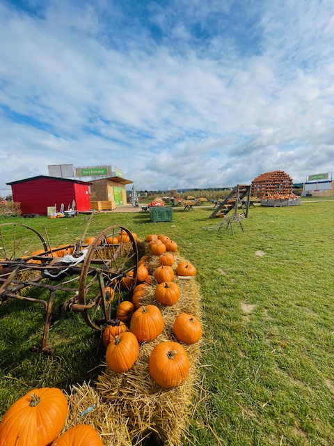 Zurück an der Halle haben wir gefrühstückt. Danach wurde in der Lagerhalle unsere Kartoffeltüte zugenäht. Wir haben dort ganz viele Kürbisse gesehen. Wir durften auch ein Stück rohen Kürbis probieren.